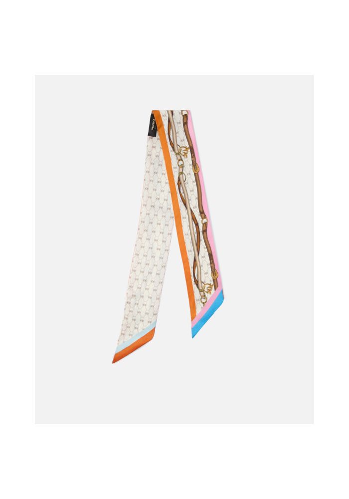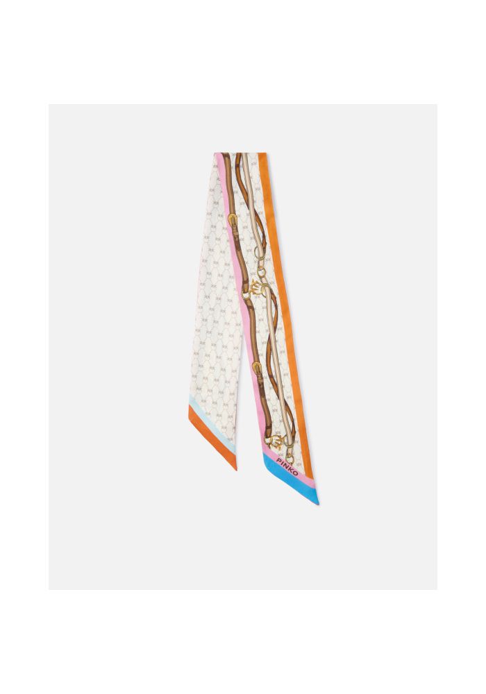 Φουλάρι Twilly από υψηλής ποιότητας σύμμεικτο μεταξωτό σερζέ ύφασμα, που χαρακτηρίζεται από μακρύ και στενό σχεδιασμό. Είναι διακοσμημένο με ένα μοτίβο όπου τα μικρά σχέδια με το λογότυπο Love Birds σε όλη την επιφάνεια συνδυάζονται με μεγάλες πολύχρωμες ρίγες και ένα σχέδιο με ζώνες και κρεμαστά διακοσμητικά Love Birds, που παραπέμπουν στον κομψό κόσμο των δερμάτινων ειδών. Το λογότυπο PINKO στη μία από τις δύο άκρες χαρίζει την τελική πινελιά στυλ. Το αξεσουάρ προσφέρεται για διάφορες χρήσεις: φορέστε το γύρω από τον λαιμό σαν τσόκερ για μια πιο μίνιμαλ εμφάνιση ή δέστε το στο χερούλι μιας τσάντας για να προσθέσετε μια πινελιά προσωπικότητας στην καθημερινή σας εμφάνιση. ΒΙΣΚΟΖΗ 65% ΜΕΤΑΞΙ 35%