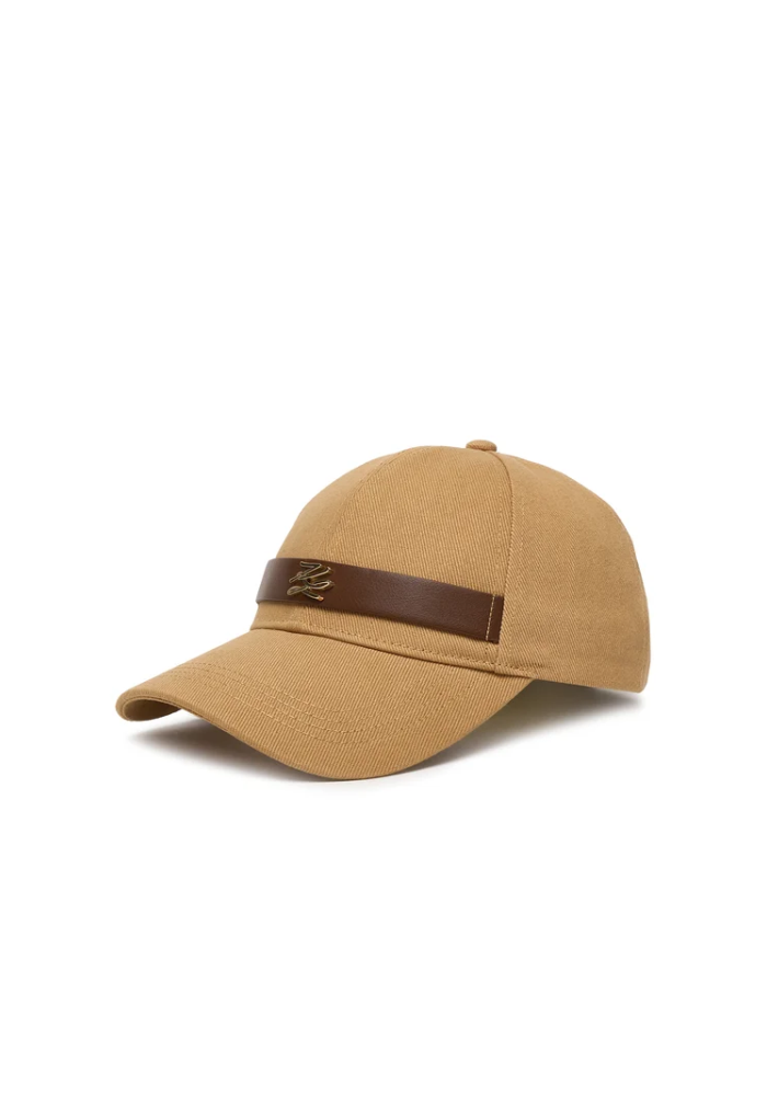 Karl Lagerfeld's brown-colored Jockey hat is ideal for providing style and protection from the sun.It has a curved cap that will keep the sun's rays away, making it the perfect choice for sunny days.