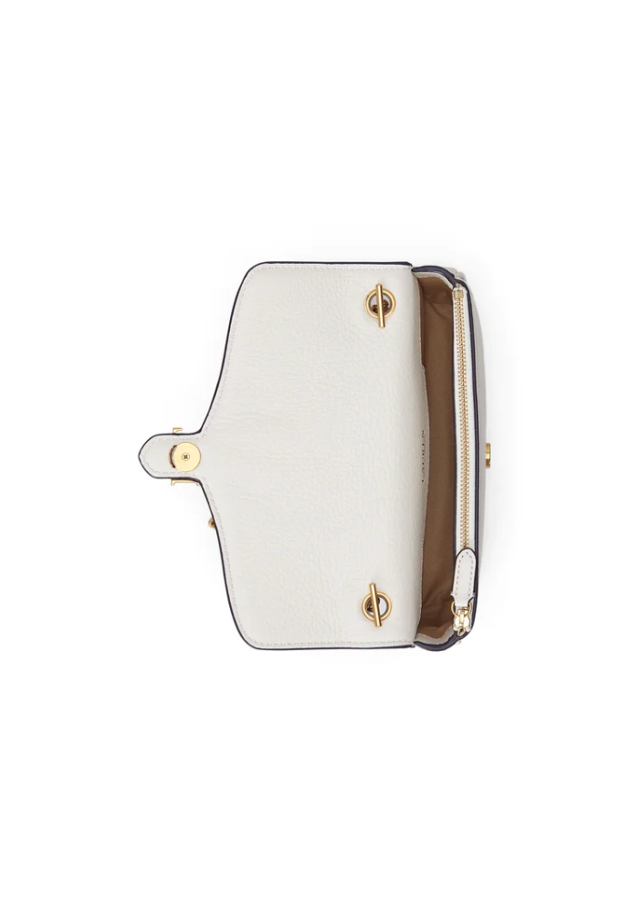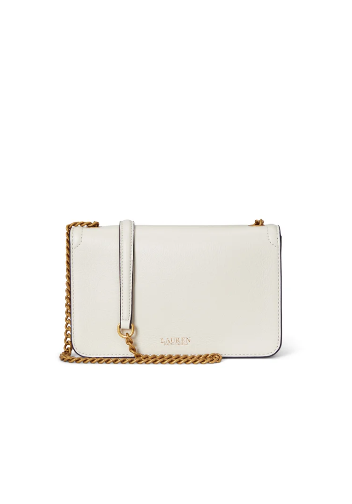 Αυτή η κομψή τσάντα με κλασικό σχέδιο και αίσθηση πολυτέλειας, είναι κατασκευασμένη από γνήσιο δερμάτινο υλικό σε λευκό χρώμα, προσφέροντας μια διαχρονική και εκλεπτυσμένη εμφάνιση. Η χρυσή αλυσίδα της δίνει έναν κομψό τόνο και επιτρέπει να φορεθεί είτε στον ώμο είτε ως clutch για βραδινές εξόδους. Το χαρακτηριστικό λογότυπο ``RL`` μπροστά προσθέτει μια διακριτική, αλλά αναγνωρίσιμη πινελιά. Ιδανική για κομψές εμφανίσεις και επίσημες περιστάσεις. 13 Υ x 20 Μ x 3 Π. 100% Δέρμα