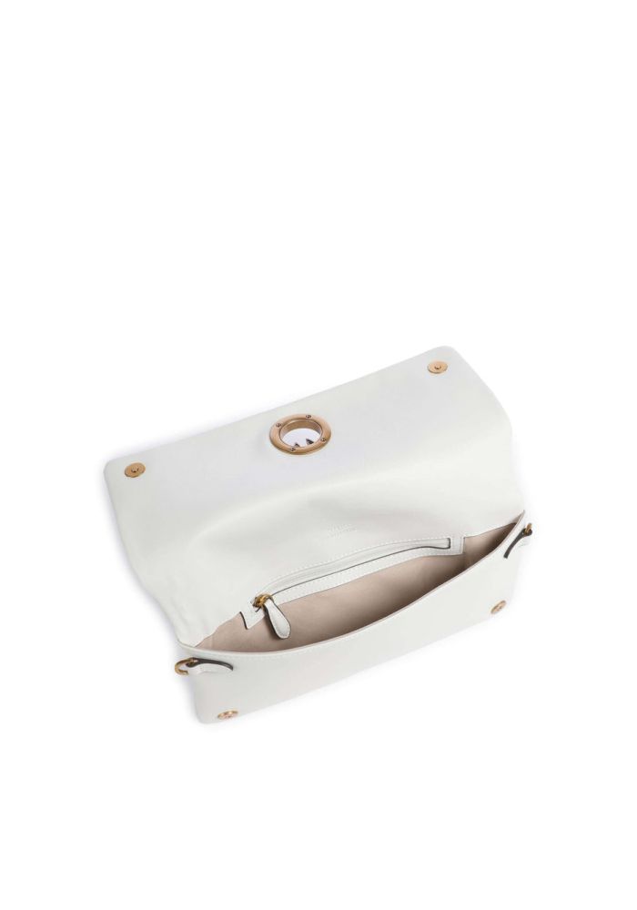 Τσαντάκι Love Bag Click Soft Horizontal μεσαίων διαστάσεων με επίπεδο σχεδιασμό και ορθογώνιο σχήμα, κατασκευασμένο από μαλακό δέρμα. Το τσαντάκι, με γέμισμα εσωτερικά και διακοσμημένο με το εμβληματικό μεταλλικό λογότυπο Love Birds Diamond Cut μπροστά, μπορεί να φορεθεί στον ώμο, χιαστί ή στο χέρι χάρη στο αφαιρούμενο δερμάτινο λουρί, που είναι διακοσμημένο με μικρούς μεταλλικούς κρίκους με γράμματα που σχηματίζουν το λογότυπο PINKO. Διαθέτει κλείσιμο με δύο εσωτερικά μαγνητικά κουμπώματα και εσωτερικό φοδραρισμένο με βαμβακερό ντρίλι, με τσέπη στο τοίχωμα που κλείνει με φερμουάρ. Ενεργοποιήστε την τσάντα σας PINKO: επαληθεύστε τη γνησιότητα του προϊόντος σας και αποκτήστε πρόσβαση στην εξατομικευμένη εμπειρία πλησιάζοντας το smartphone σας στο κέντημα Love Birds στην πίσω πλευρά της τσάντας! Δέρμα: ΔΕΡΜΑ ΜΟΣΧΑΡΙΟΥ 100% - Φόδρα: ΒΑΜΒΑΚΙ 100% - Επένδυση: ΠΟΛΥΟΥΡΕΘΑΝΗ 70% ΠΟΛΥΑΜΙΔΙΟ 30% - Αξεσουάρ: Ψευδάργυρος 100% Υ: 13.0 cm Π: 3.0 cm Μ: 27.0 cm