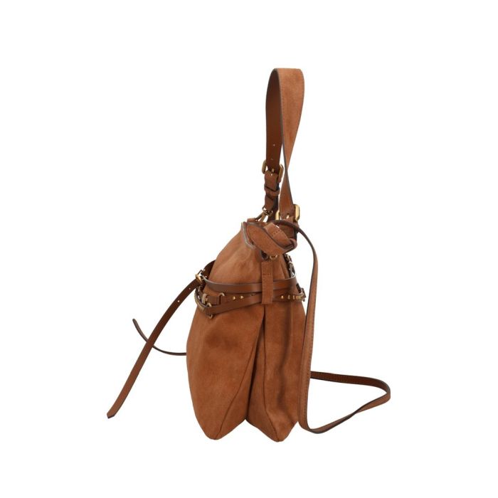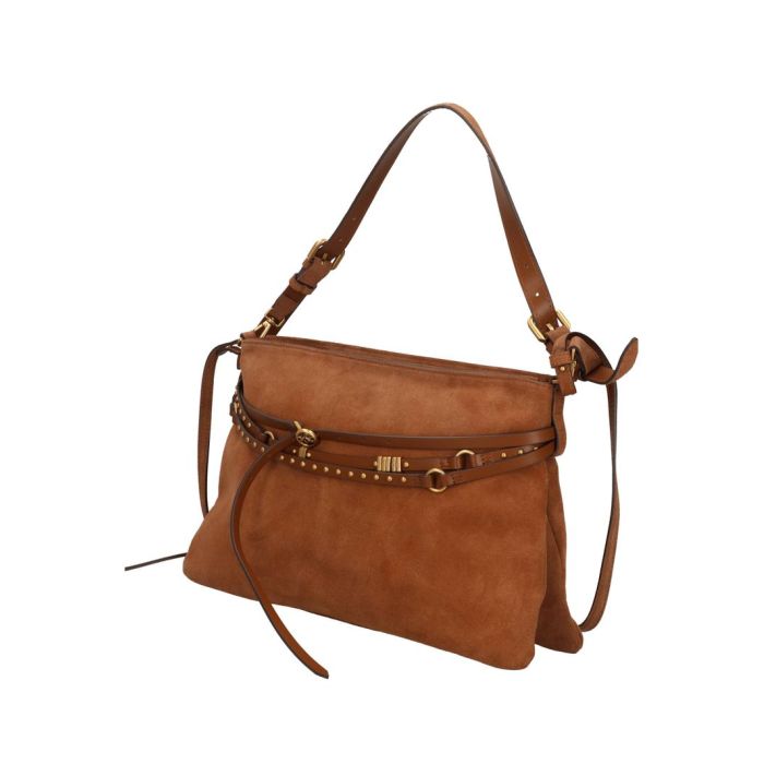 Pink Bag of large dimensions with a flat design and light in bank shape, made of soft suit leather. It is decorated with a minute, unobstructed, adjustable sleeve that reaches the top several times, with your rounded shoulder, a small touch of the pin with the symbol of Love and the letter "Love" and the letter "Love" can be used in the back of the hand as well as in the back of the sleeve.
