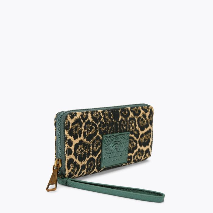 This Southbank wallet with a furmour is made of leopard fabric with a printed design, with metallic green ornaments and a plaster on the front.It has a metallic green handle for the field. 9cm (Y), 19cm (Μ), 3cm (Β) It can stretch up to eight credits Materials: Materials: Materials.