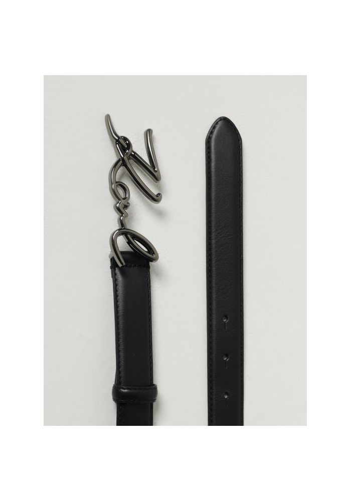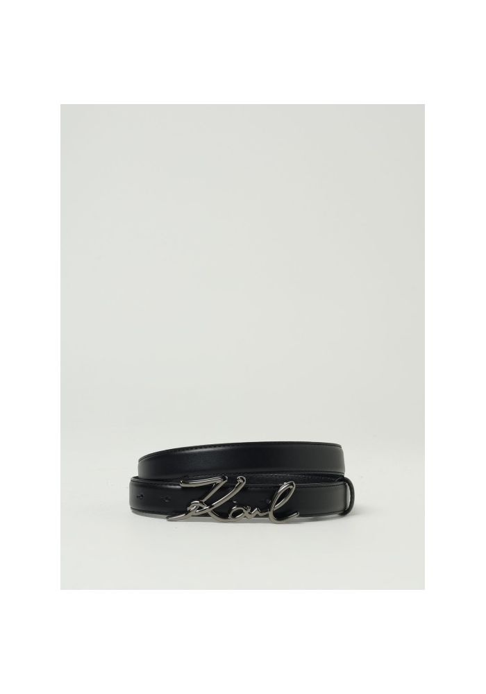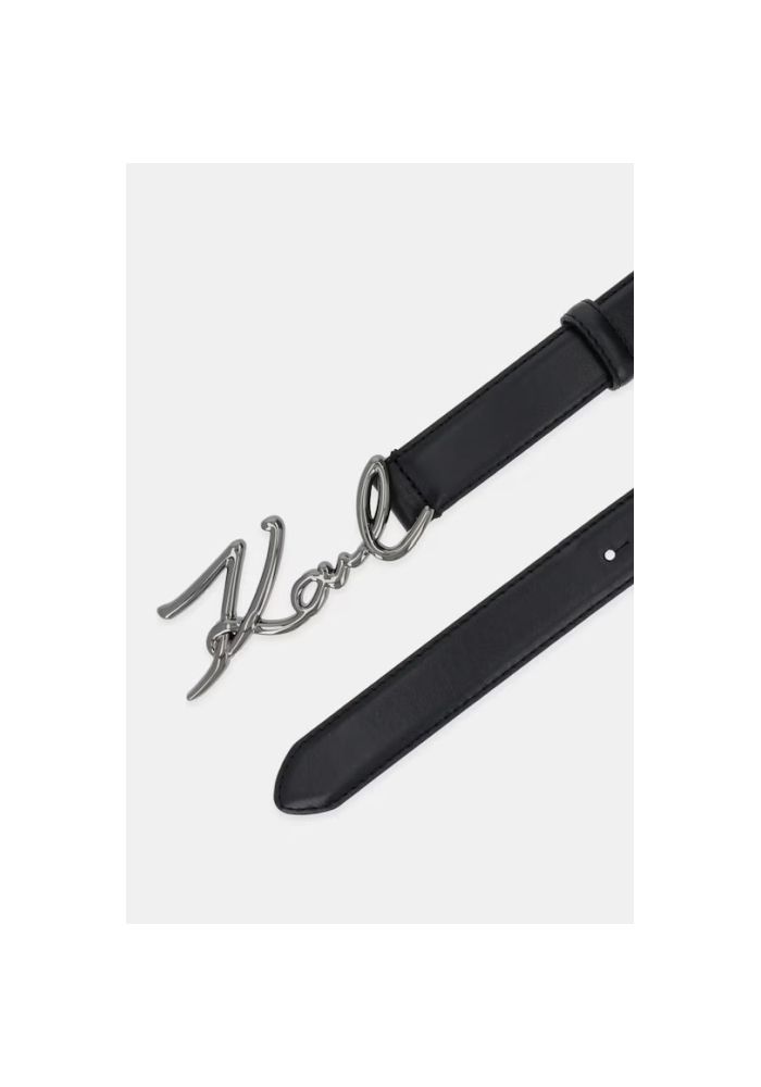KARL LAGERFELD leather belt 2.5cm thick. It has a metallic grip with Karl's signature in gunmetal tint. Ideal to add a pinkish to your appearance.