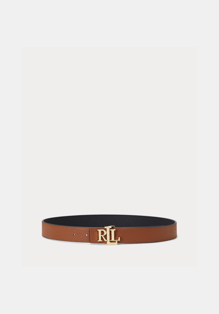 Η δερμάτινη γυναικεία ζώνη διπλής όψης σε καφέ και μαύρη απόχρωση της Ralph Lauren συνδυάζει στυλ και ποιότητα, προσφέροντας μια κομψή επιλογή για κάθε σας εμφάνιση. Φάρδος ζώνης 3cm.Το πολυτελές δέρμα με βοτσαλωτές λεπτομέρειες προσδίδει διακριτική υφή σε αυτή τη ζώνη διπλής όψης, η οποία διαθέτει στο κέντρο μια αγκράφα ``LRL`` για ένα εμβληματικό αξεσουάρ Lauren Ralph Lauren.