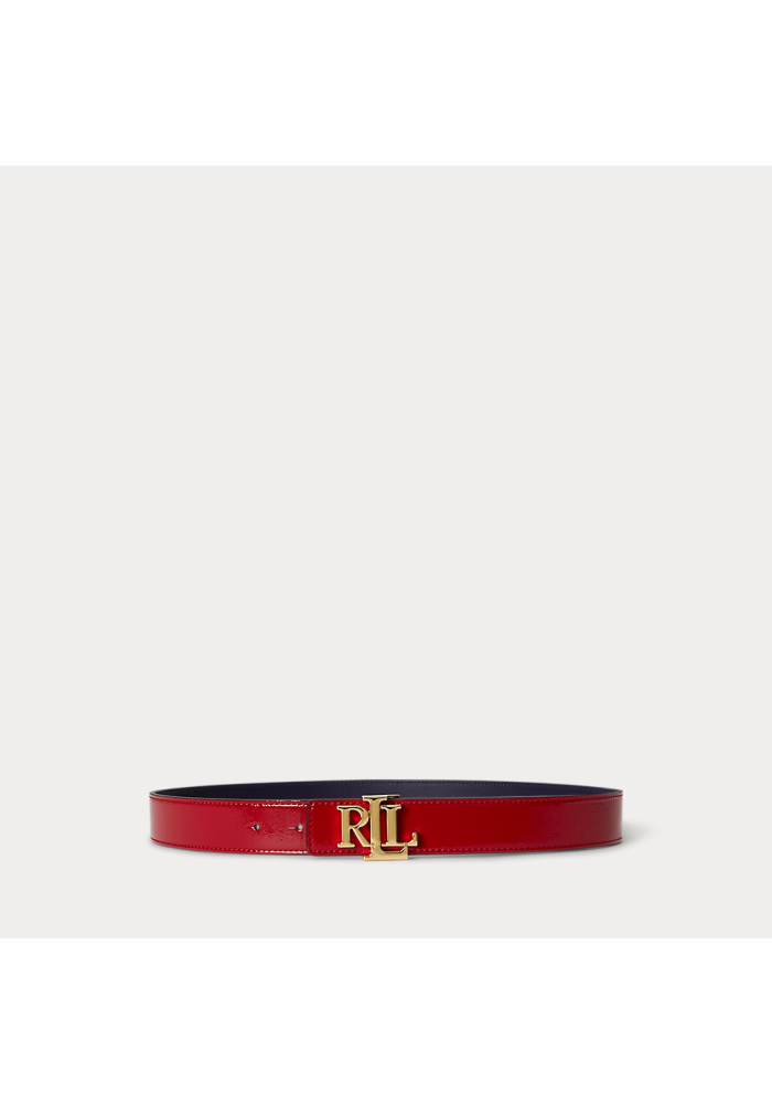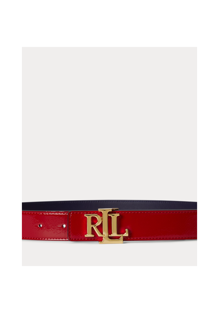 Lauren ralphlauren ζώνη δερμάτινη διπλής όψης λουστρίνι με λογότυπο 412P10211001