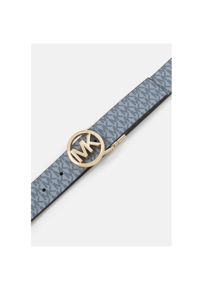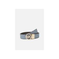 MICHAEL KORS Double-sided leather zone 32mm. It has a golden rounded sleeve with the Michael Kors logo. The first face is a blue logo and the second face is a tabular logo.