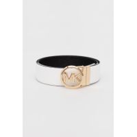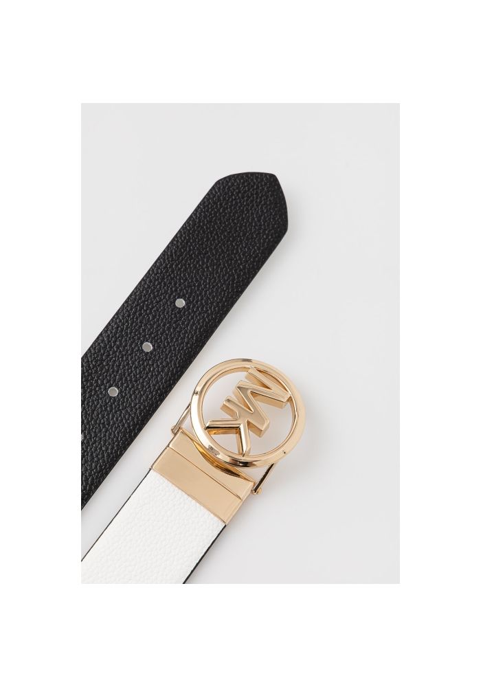MICHAEL KORS Ζώνη δερμάτινη διπλής όψης 38mm. Διαθέτει χρυσή στρογγυλή αγκράφα με λογότυπο Michael Kors και υφή pebble. Η πρώτη όψη είναι λευκή και η δεύτερη όψη μαύρη. Σύνθεση: 100% Δέρμα.