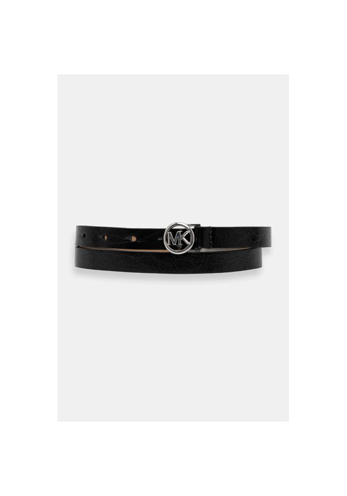 MICHAEL KORS Ζώνη δερμάτινη skinny 18mm. Διαθέτει ασημί στρογγυλή αγκράφα με λογότυπο Michael Kors και γυαλιστερή όψη.Το εσωτερικό είναι σε απόχρωση ταμπά. Σύνθεση: 100% Δέρμα.