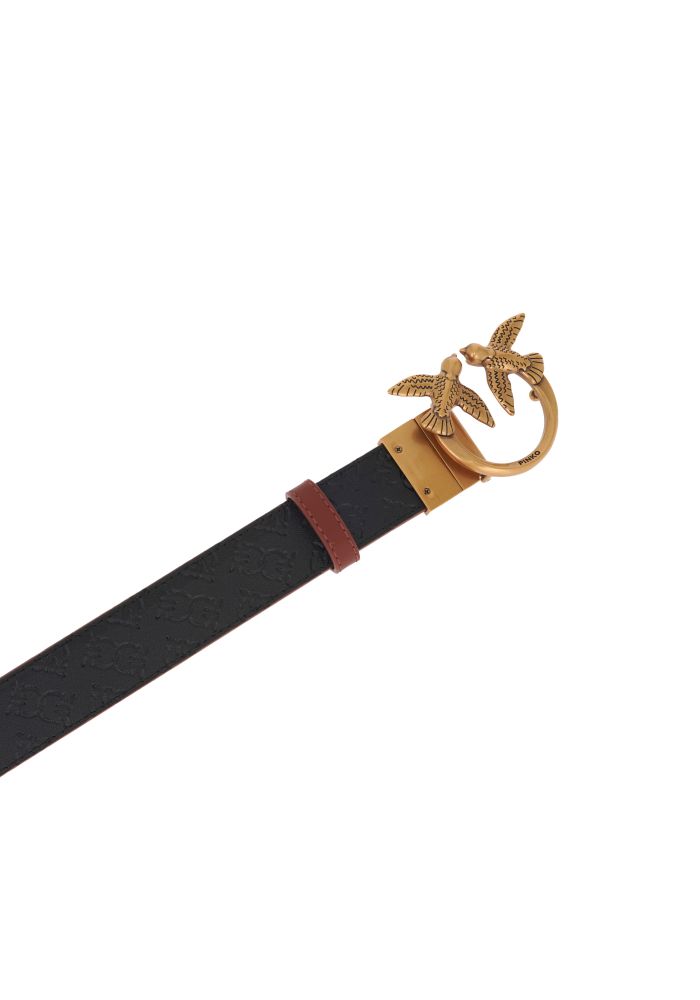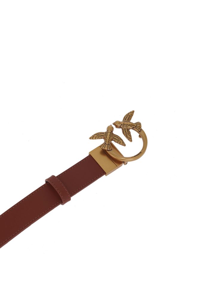 Ζώνη από μαλακό δέρμα με πολύ απαλή υφή, με εσωτερική πλευρά από κοκκώδες δέρμα διαφορετικού χρώματος. Η μεταλλική αγκράφα Love Birds Diamond Cut, γαλβανισμένη σε αντικέ χρυσό χρώμα,έχει έναν ειδικό περιστρεφόμενο μηχανισμό έτσι ώστε η ζώνη να μπορεί να φορεθεί και από τις δύο πλευρές. ΔΕΡΜΑ ΑΓΕΛΑΔΑΣ 100%