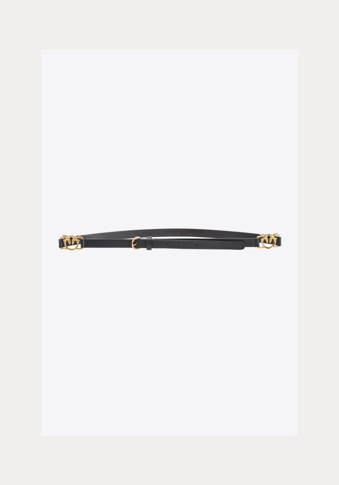 Lighted leather belt with two mini mini antique gold plated metal grips Love Birds Diamond Cut. Mini with a leathery tail in front.