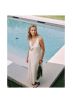 Μακρύ φόρεμα από ρευστό ύφασμα με λεπτές τιράντες και V ντεκολτέ. Η απαλή, ελαφρώς φαρδιά σιλουέτα τραβάει με χάρη, δημιουργώντας μια θηλυκή και εκλεπτυσμένη εμφάνιση, ιδανική για βραδινές περιστάσεις.