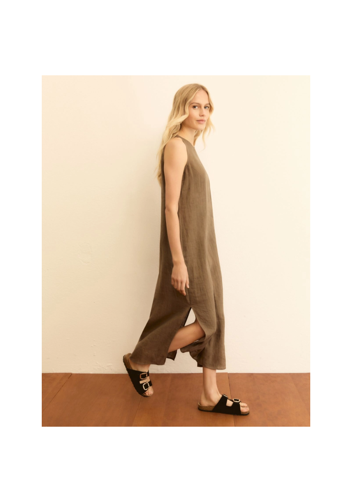 Ένα απαραίτητο καλοκαιρινό κομμάτι: το νέο φόρεμα από καθαρό λινό με ίσια γραμμή στο μπούστο και βαθύ πλαϊνό σκίσιμο. Διατίθεται σε έντονες αποχρώσεις για ένα νέο αστικό στυλ.