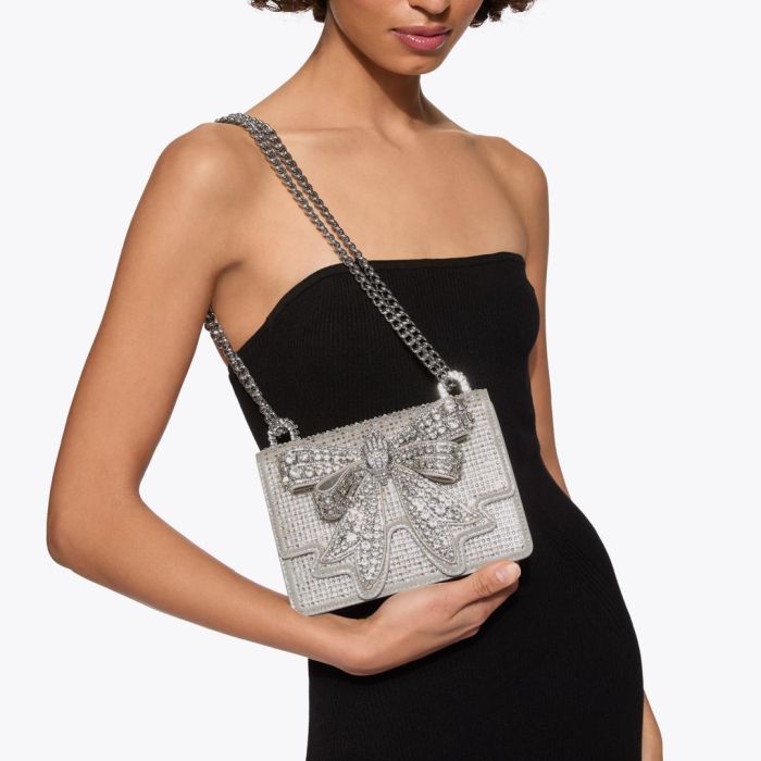 Το Small Shoreditch Cross Body είναι κατασκευασμένο από μεταλλικό ύφασμα, διακοσμημένο με ιριδίζοντα κρύσταλλα. Το μπροστινό καπάκι ολοκληρώνεται με ένα μεγάλο, κρυστάλλινο φιόγκο και μια ασημένια κεφαλή αετού με κρυστάλλινη λεπτομέρεια στο μπροστινό καπάκι.Ασημένιο λουράκι αλυσίδας που διέρχεται από δύο μεταλλικές γέφυρες Κλείσιμο με διπλό μαγνητικό κούμπωμα κρυμμένο κάτω από το πτερύγιο Ασημένια μεταλλική πλάκα με ετικέτα στο πίσω μέρος Εξωτερική επίπεδη τσέπη στο πίσω μέρος Μπορεί να χωρέσει τηλέφωνα έως 7 ίντσες Εσωτερικό χωρισμένο σε δύο κύριες θήκες Εσωτερική τσέπη με αφαιρούμενο καθρέφτη Εξωτερικό: Ύφασμα Εσωτερικό: Επένδυση από τεχνητό δέρμα Αριθμός στυλ: 0508263609 13 Χ 20,5 Χ 6 CM