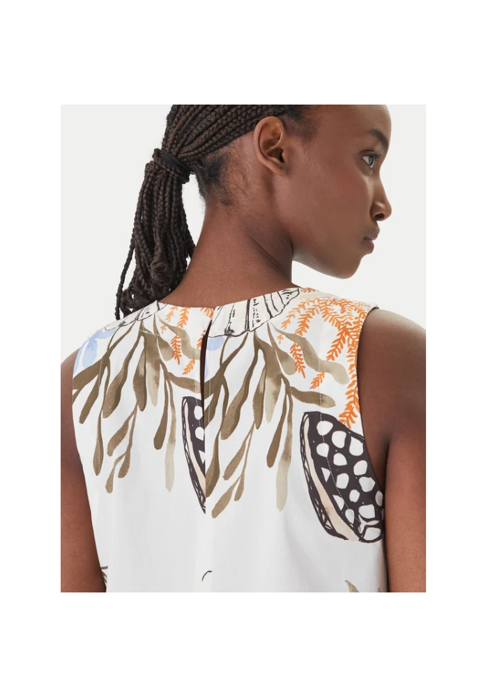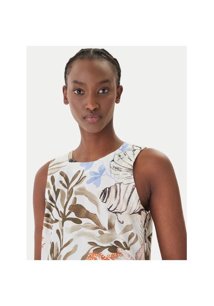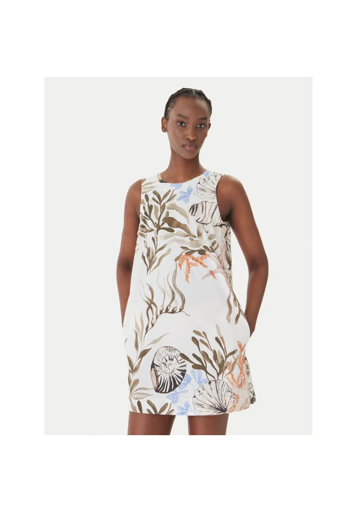 Το φρέσκο ​​καλοκαιρινό print είναι μια πρόσκληση για ανάλαφρη αίσθηση: αυτό το αμάνικο φόρεμα παίζει με κοράλλια και κοχύλια για μια αίσθηση θάλασσας όλο το χρόνο.