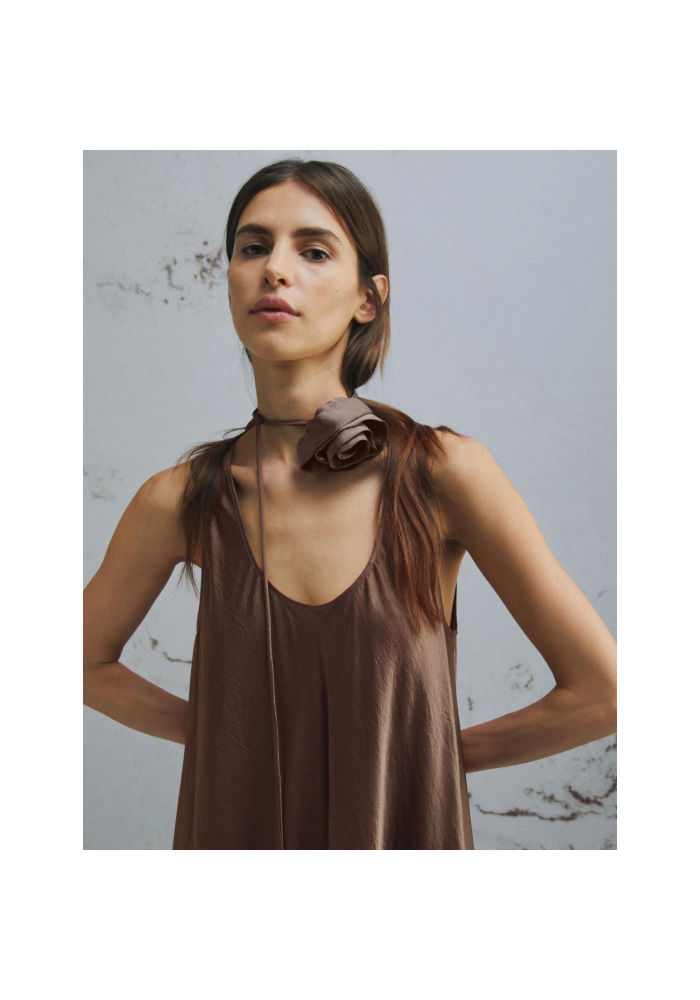 • Ζώνη από ασορτί ύφασμα με λεπτομέρεια λουλουδιών