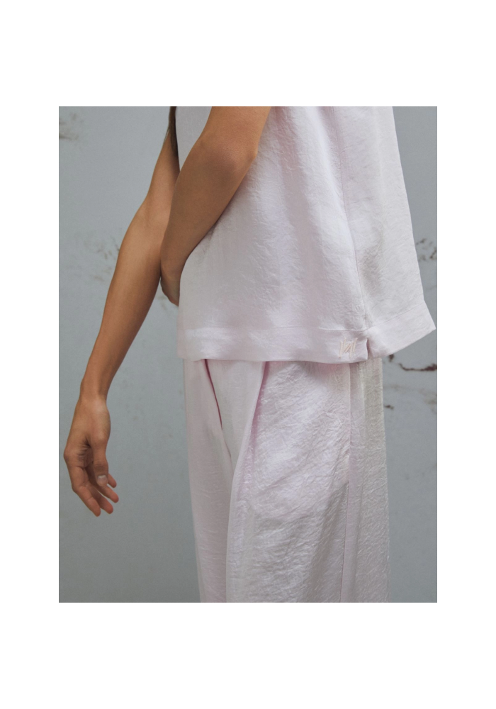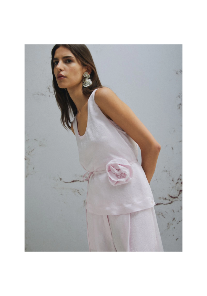 Η ανάγλυφη επιφάνεια του υφάσματος με τσαλακωμένο twill προσδίδει μια εκλεπτυσμένη γοητεία σε αυτό το τοπ. Ολοκληρώστε την εμφάνιση δένοντας το λουλούδι του υφάσματος γύρω από τον λαιμό ή τη μέση, για μια ρομαντική πινελιά.