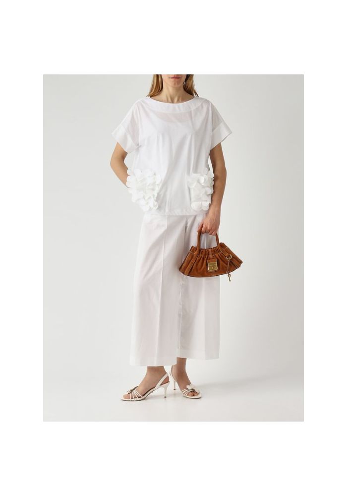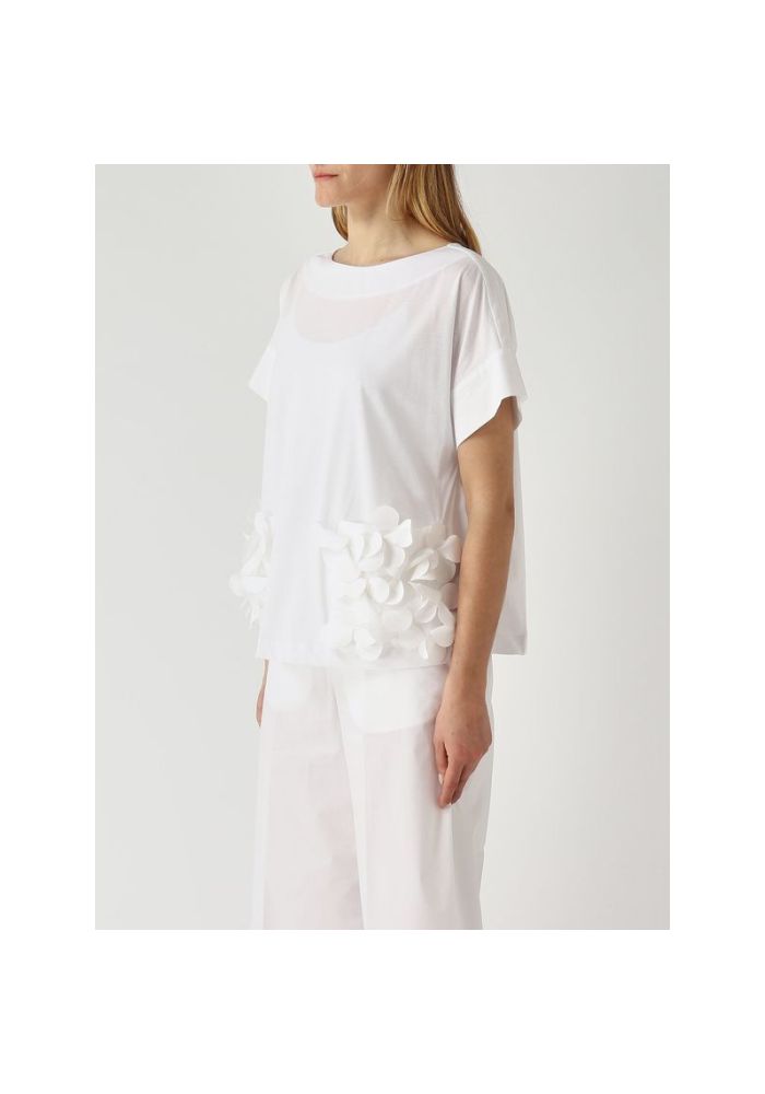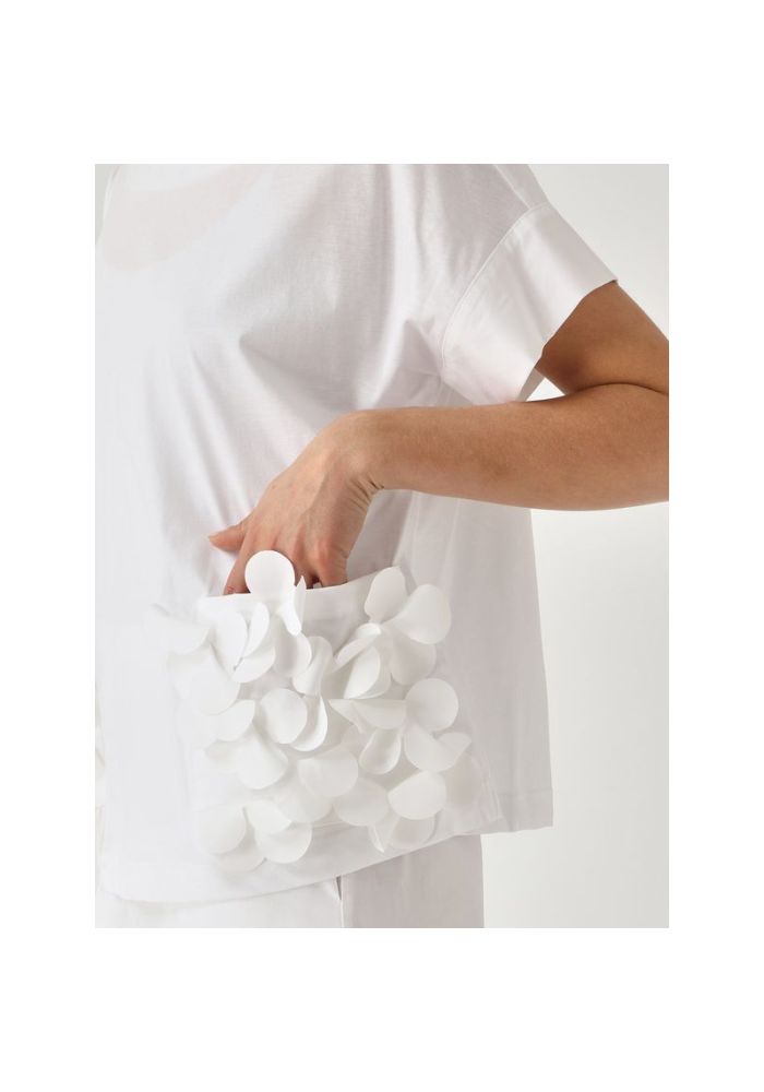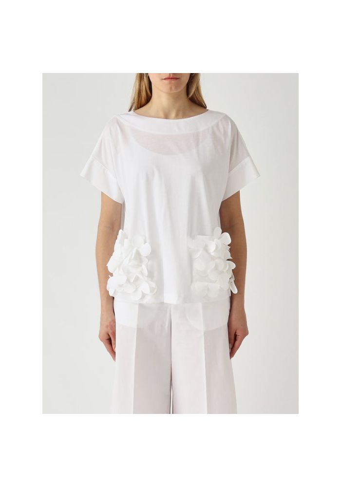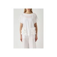 Αυτό το μπλουζάκι μετατρέπει ένα κλασικό κομμάτι σε ένα εντυπωσιακό κομμάτι. Κατασκευασμένο από απαλό βαμβάκι, διαθέτει χαλαρή, μακρόστενη εφαρμογή με χαμηλά μανίκια για αβίαστη κομψότητα. Το αποκορύφωμα; Δύο μεγάλες μπροστινές τσέπες, γεμάτες με τρισδιάστατα φλοράλ απλικέ για μια εντυπωσιακή, παιχνιδιάρικη πινελιά.