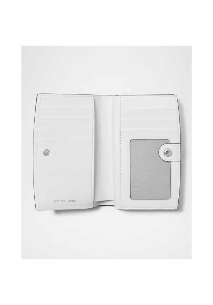 Δερμάτινο πορτοφόλι μεσαίου μεγέθους Michael Kors. Διαθέτει εσωτερική θήκη για φωτογραφία, 7 θήκες για πιστωτικές κάρτες, 2 τσέπες slip, 1 θήκη για χαρτονομίσματα και μια θήκη για κέρματα. Κλείσιμο με φερμουάρ. Υλικό: 100% δέρμα.