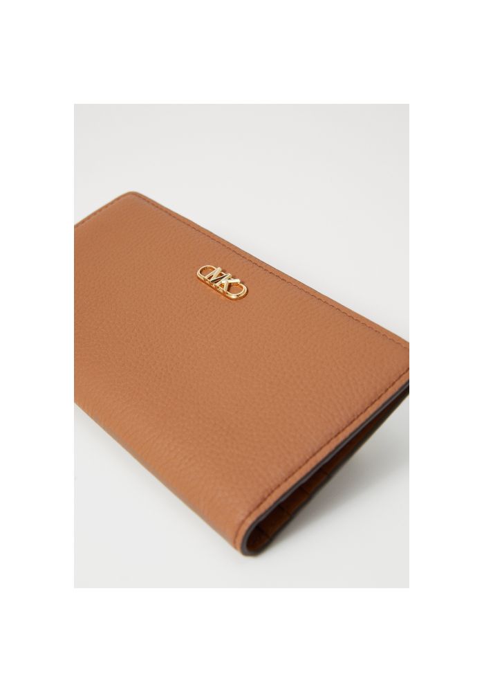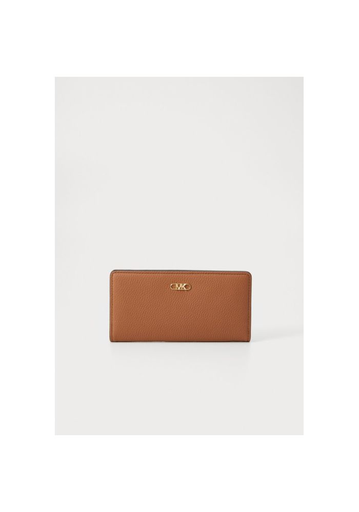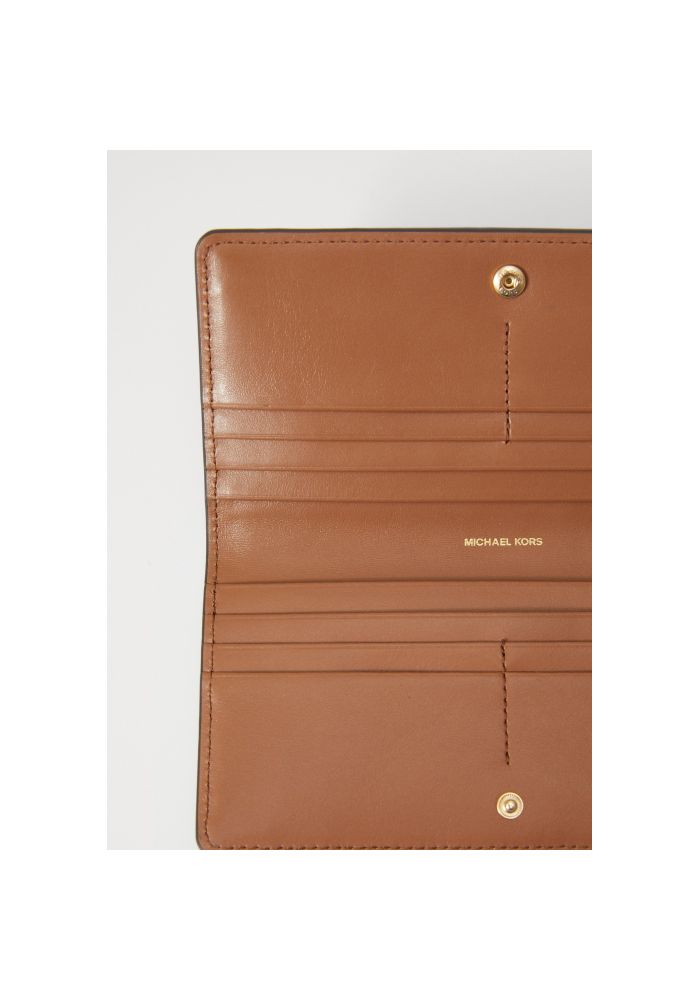 Leather wallet Michael Kors. It has 4 pockets for credit cards and 4 pockets for slip wallets and a back pocket externally for coins that close with a zipper.Close with a button.Material: 100% leather.