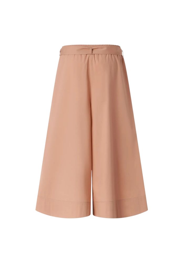 Μακριά βερμούδα με ελαφρώς εβαζέ μπατζάκια, κατασκευασμένη από άνετη και δροσερή, ελαστική βαμβακερή ποπλίνα. Διαθέτει ελαστική μέση και κομψές πιέτες μπροστά και ολοκληρώνεται με ζώνη από το ίδιο ύφασμα, διακοσμημένη με αγκράφα σε χρυσό χρώμα με το εμβληματικό λογότυπο Love Birds Diamond Cut. Η μεγάλη ευελιξία του κομματιού το καθιστά απόλυτο must-have στη γυναικεία γκαρνταρόμπα για το καλοκαίρι.