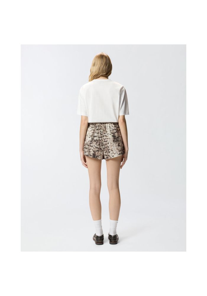 Κοντομάνικο t-shirt από απαλό βαμβακερό ζέρσεϊ ύφασμα με στρογγυλή λαιμόκοψη. Οι λιτές γραμμές του αναδεικνύονται από το κέντημα στο στήθος, που αποτελείται από λαμπερά, πολύχρωμα κρύσταλλα που σχηματίζουν το μοναδικό λογότυπο Love Birds.
