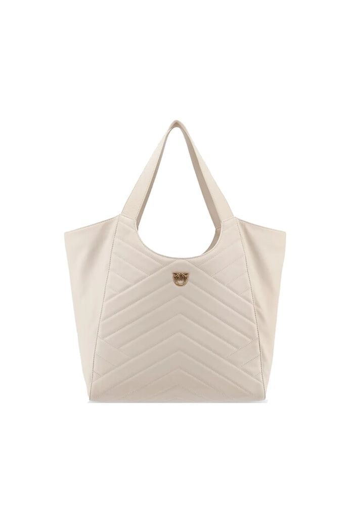 PINKO Τσάντα δερμάτινη tote καπιτονέ. Διαθέτει εσωτερικές τσέπες, φαρδιά λουριά ώμου, κλείσιμο με γάντζο και λουριά και μεταλλικό λογότυπο σε αντικέ χρυσό. Σύνθεση: 100% δέρμα. Ύψος: 38 cm Πλάτος: 18 cm Μήκος: 35 cm