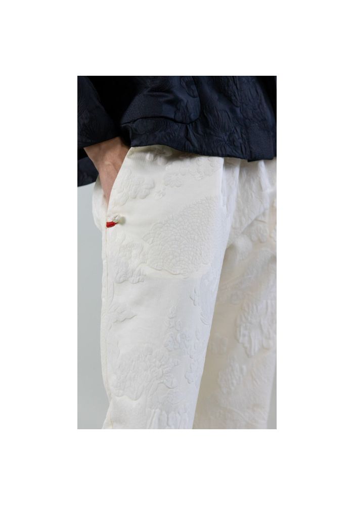 Αυτό το ελαφρύ παντελόνι ζακάρ συνδυάζει τη διακριτική υφή με μια χαλαρή, μοντέρνα σιλουέτα. Η ελαστική ζώνη στη μέση προσφέρει άνεση και ευέλικτη εφαρμογή, ενώ το ίσιο μπατζάκι δημιουργεί μια φυσική, ισορροπημένη κίνηση. Οι πλαϊνές τσέπες με ρέλι που ολοκληρώνονται κλείσιμο σε στιλ chino, εισάγουν μια εκλεπτυσμένη, χειροποίητη πινελιά που αναδεικνύει την απλότητα του σχεδίου.
