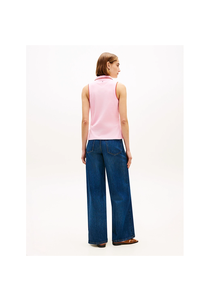 Ετοιμαστείτε για τις γιορτές με αυτό το κεντημένο πόλο μπλουζάκι σε στενή γραμμή, κατασκευασμένο από ελαστικό βαμβακερό πικέ σε θηλυκή αμάνικη σιλουέτα.Ελαστικό βαμβακερό πικέ Συλλογή 1985.Γιακάς και μασχάλες πόλο με μύτες.Ριμπ γιακάς πόλο Πατιλέτα με πέντε κουμπιά  Κέντημα με το λογότυπο Tommy Hilfiger στο στήθος