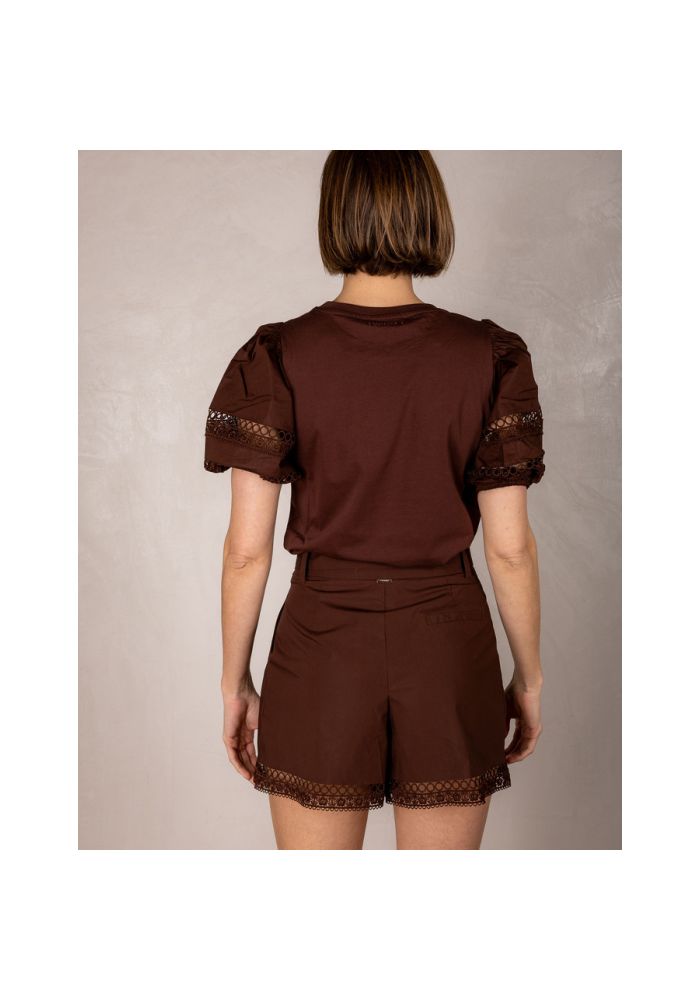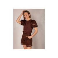 Μπλούζα με κοντά μανίκια φουσκωτά με κέντημα.