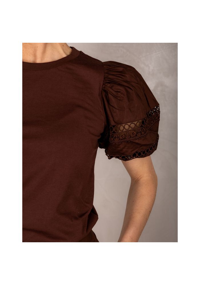 Μπλούζα με φουσκωτά κοντά μανίκια και κέντημα.95% βαμβάκι και 5% ελαστίνη.Κανονική εφαρμογή.