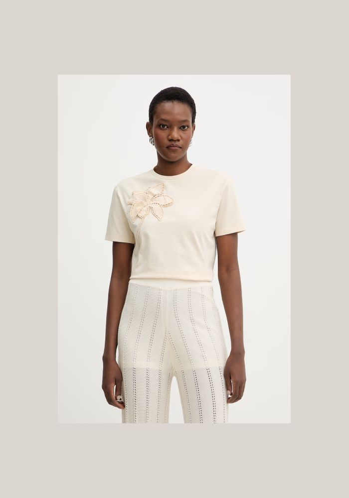 Twinset παντελόνι φαρδύ από ποπλίνα με κέντημα 261TT225212110