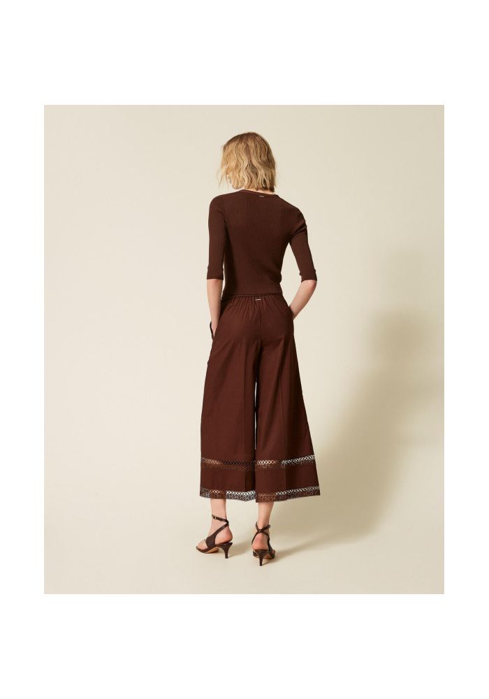 Twinset παντελόνι φαρδύ από ποπλίνα με κέντημα 261TT225212110 comes with: