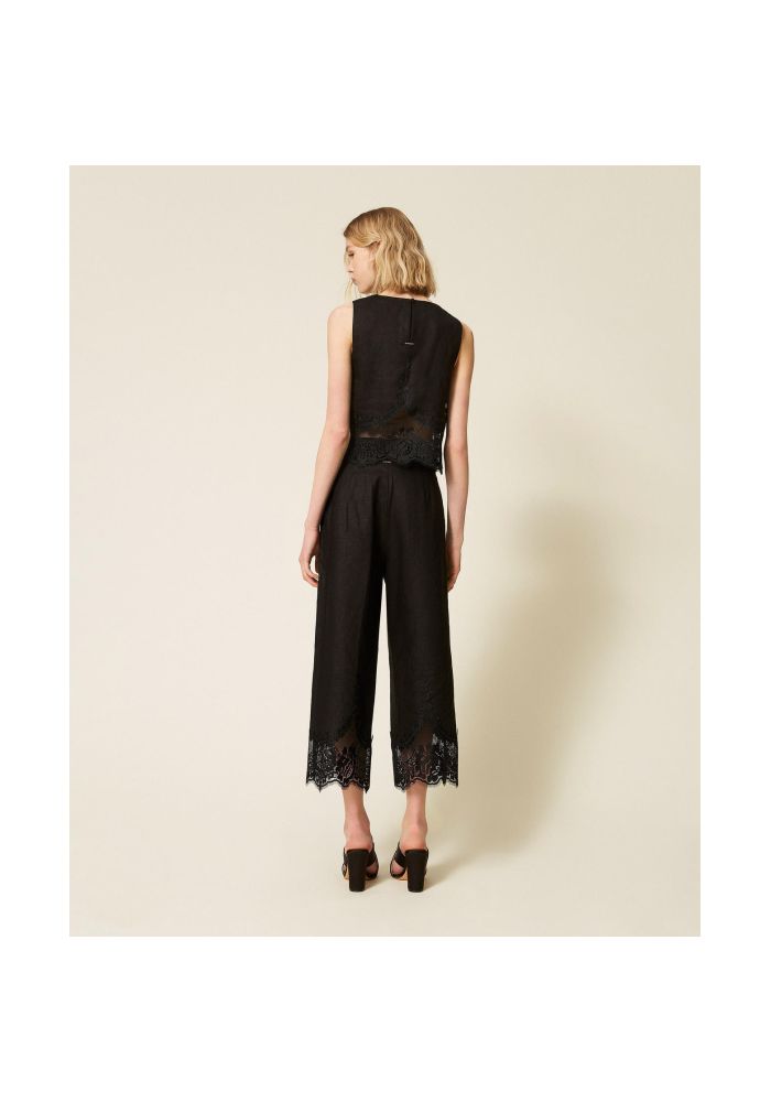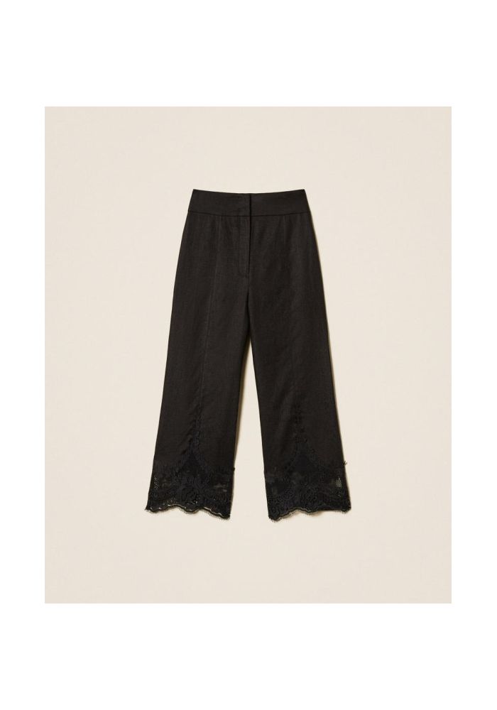 Twinset παντελόνι λινό κοντό με δαντέλα 261TT218400006