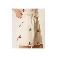 Σόρτς ραμί με κέντημα κερασιάς σε όλη την επιφάνεια, αποκλειστικότητα Twinset. Ελαστική μέση, βολάν στο τελείωμα, λοξές τσέπες, άνετη εφαρμογή.