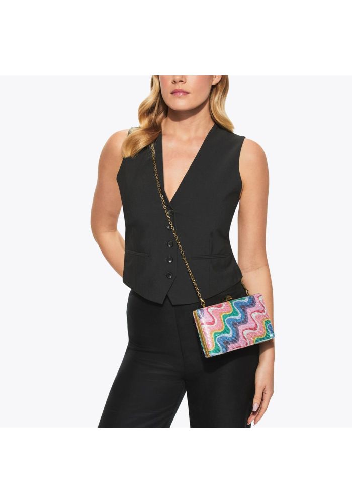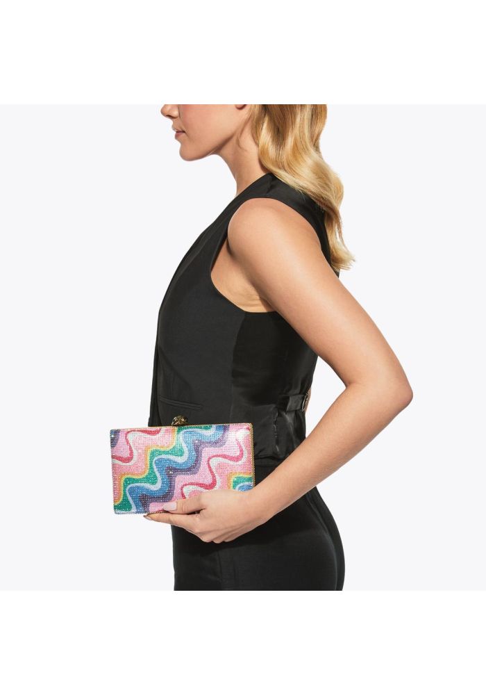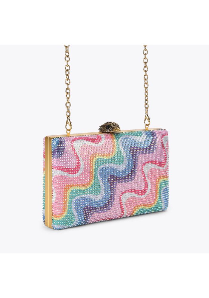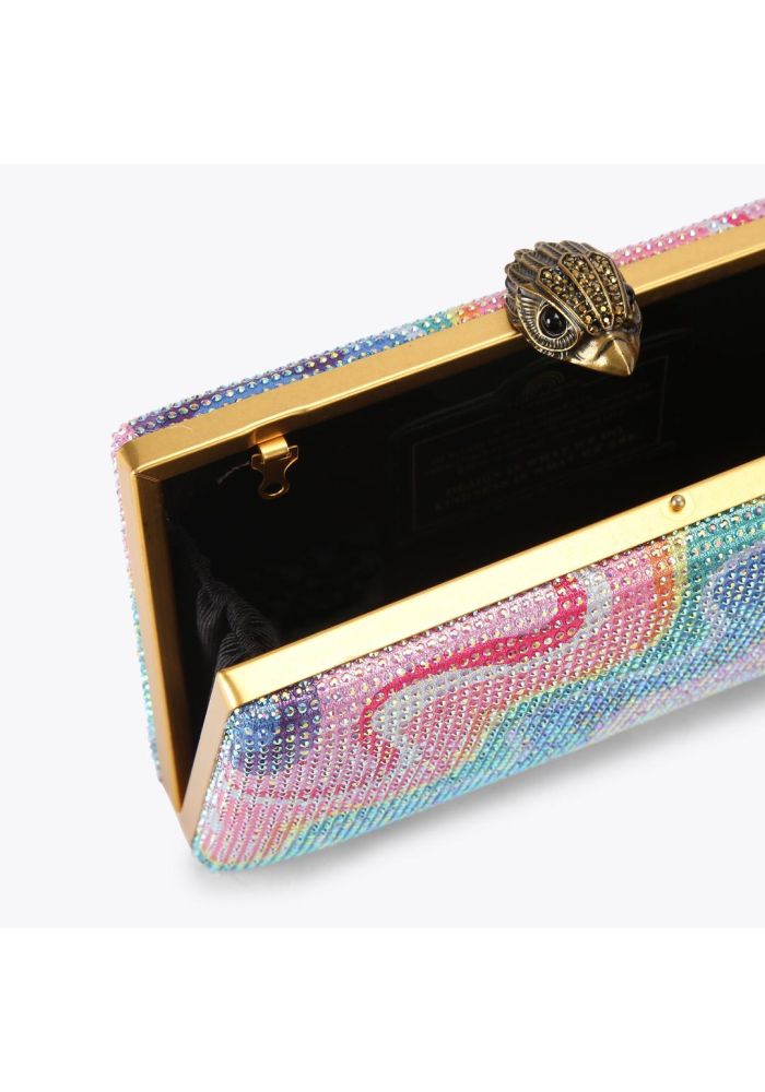 Το τσαντάκι Kensington Crystal είναι κατασκευασμένο από ύφασμα με στροβιλισμό σε χρώματα ουράνιου τόξου και κρυστάλλινες διακοσμήσεις. Η αντίκα ορειχάλκινη κεφαλή αετού διαθέτει κρυστάλλους και μαύρα κρυστάλλινα μάτια στο κούμπωμα.