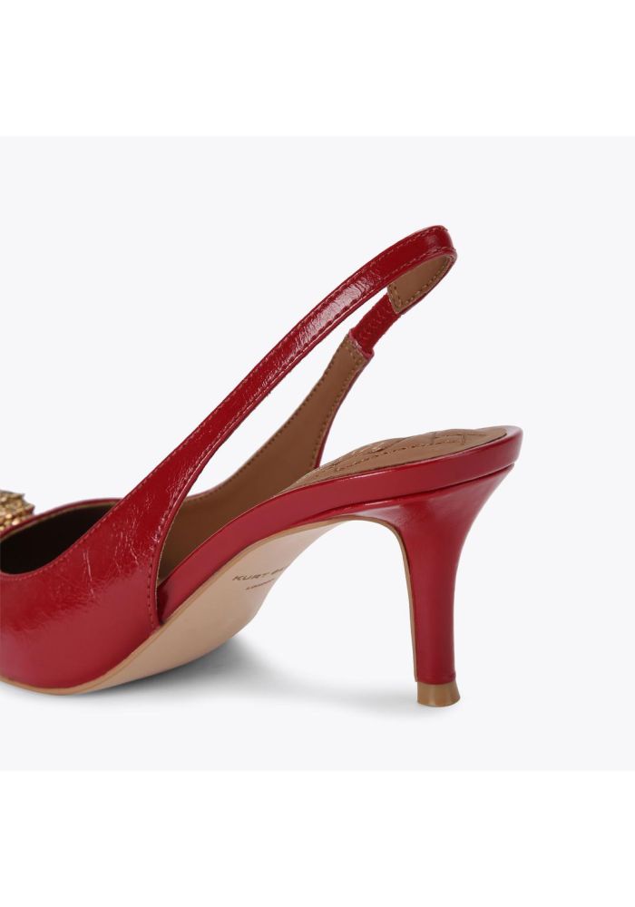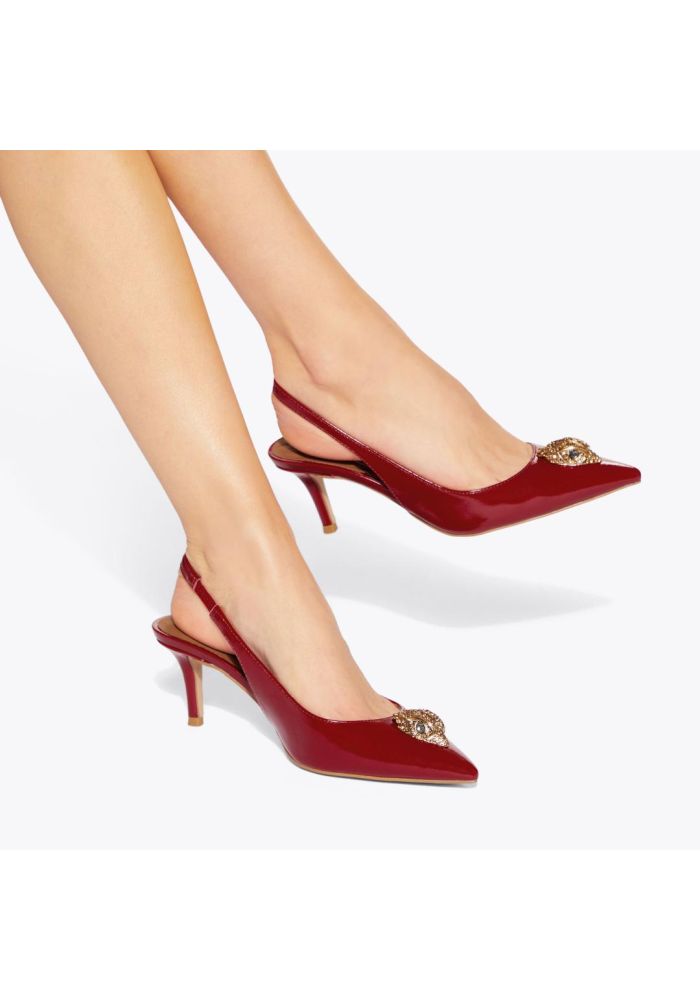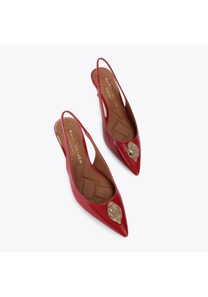 Η γόβα Belgravia Eagle με λουράκι στο πίσω μέρος διατίθεται σε κόκκινο λουστρίνι. Η μυτερή μύτη ολοκληρώνεται με ένα λαμπερό ορειχάλκινο κεφάλι αετού με κρυστάλλους σε όλη την επιφάνειά του. Ύψος τακουνιού: 6 εκ. Καπιτονέ πάτος με επένδυση Υλικό: Δέρμα Αριθμός στυλ: 9786950319