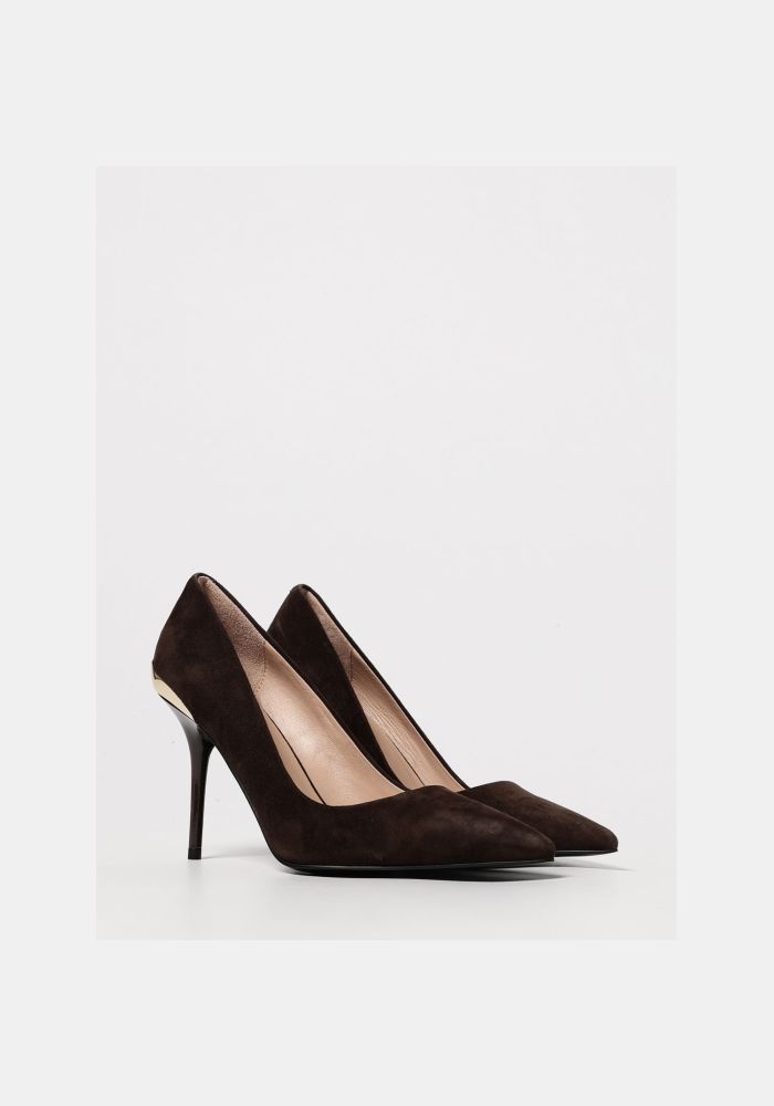 Γόβες από τη Love Moschino κατασκευασμένο από σουέτ δέρμα. Ένα μοντέλο με δερμάτινο ένθετο,το οποίο χάρη στους φυσικούς πόρους αποτρέπει το τρίψιμο.Φυσικό δέρμα Σουέτ Σόλα: Υλικό υψηλής ποιότητας Ύψος τακουνιού: 10 cm Τακούνι στιλέτο