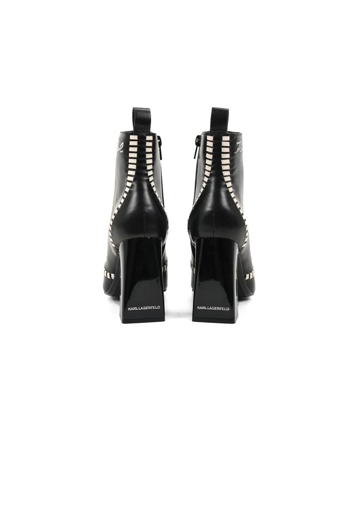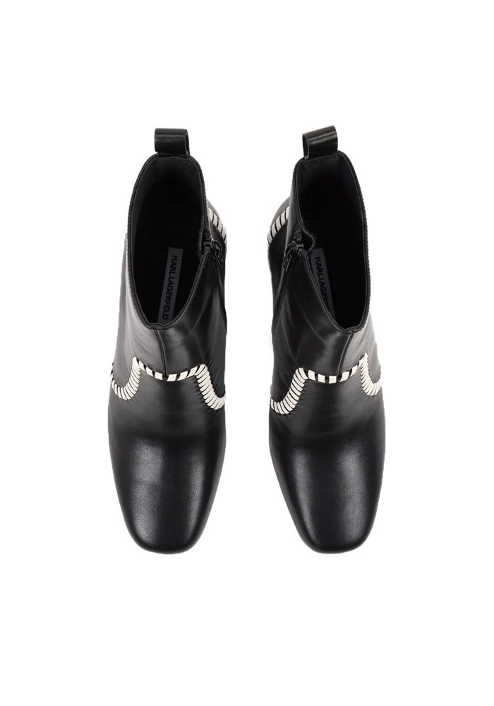 KARL LAGERFELD's leather bottles have an elegant lightly square nose, impressive block-type towels and closing masks.The detail with white thread and signature at the top adds a painting of colour, ideal to indicate every morning as well as every evening.