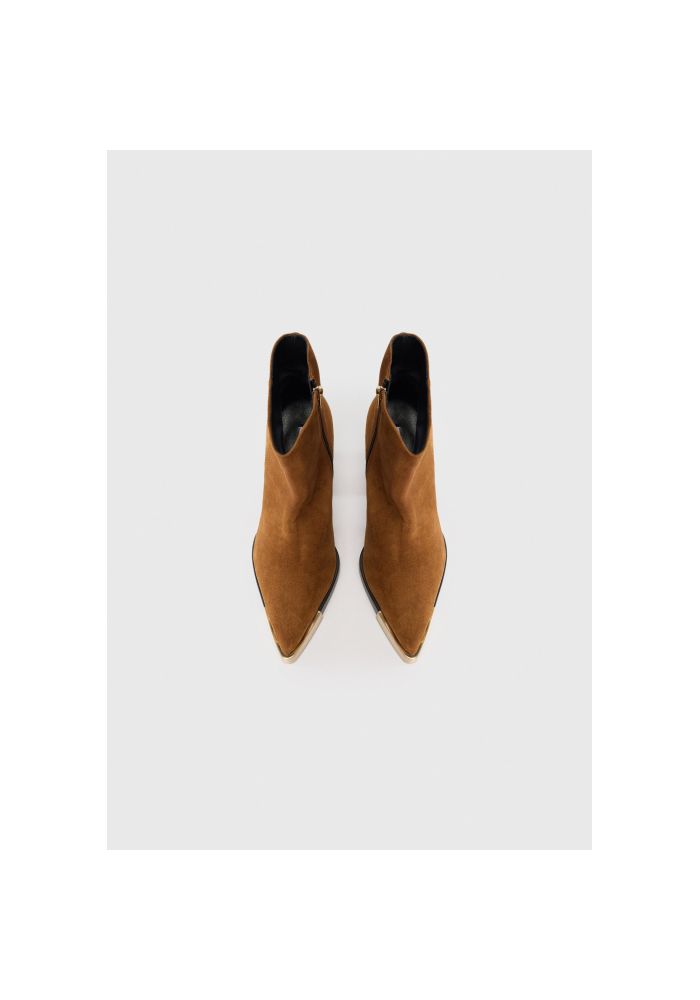 KARL LAGERFELD's suede bottles have an elegantly pointed nose, an impressive block height and a leather closure.The golden detail and signature on Karl's nose add a touch of luxury, ideal for developing.