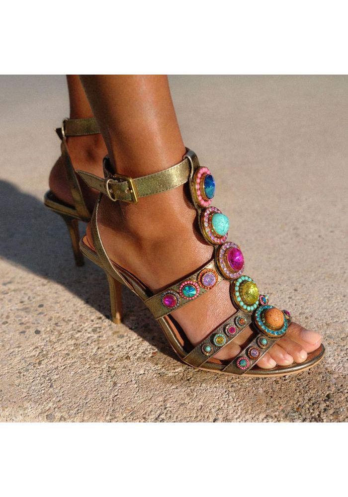 Αυτή η γόβα Octavia Flexi Gladiator είναι κατασκευασμένη από μπρονζέ δέρμα. Υπάρχουν ανάμεικτες πέτρες ρητίνης στο επάνω μέρος καθώς και πολύχρωμοι κρύσταλλοι. Το λουράκι στον αστράγαλο στερεώνεται με μια μικρή χρυσή πόρπη. Ύψος τακουνιού: 8,5 cm Εύκαμπτη σόλα για μεγαλύτερη άνεση Υλικό: Δέρμα Αριθμός στυλ: 4369268109
