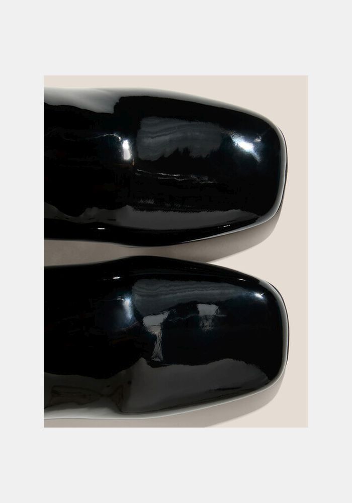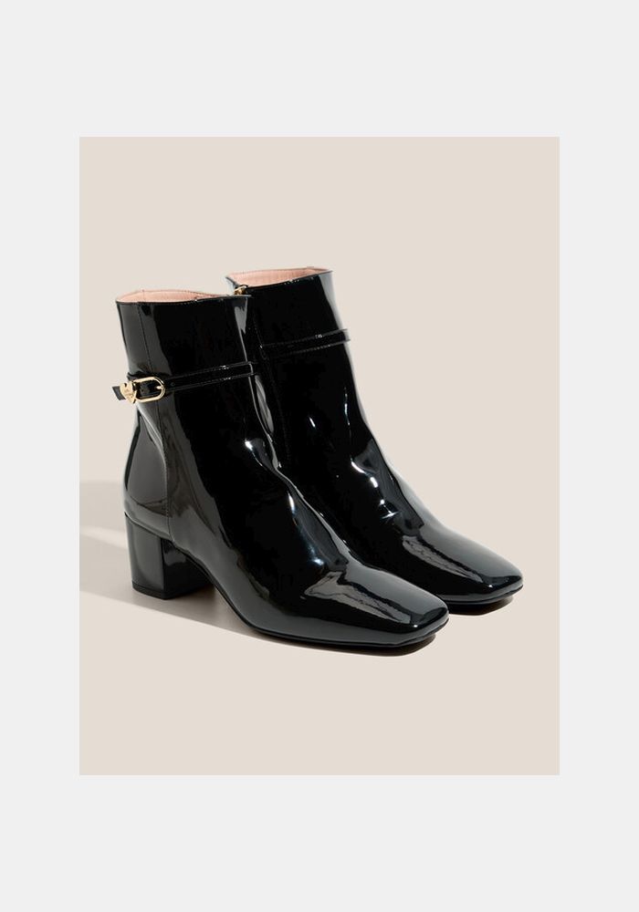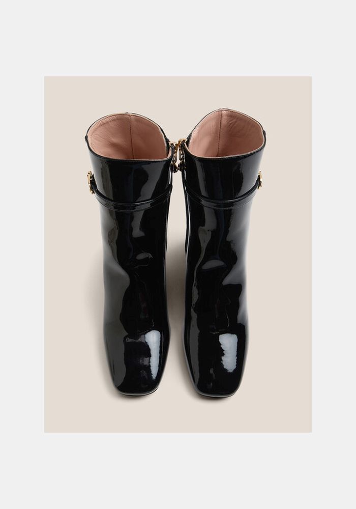 Love moschino δερμάτινα μποτάκια λουστρίνι.Στρογγυλεμένο μπροστινό μέρος.Κλείνει με φερμουάρ .Υψος τακουνιού 5cm.Σόλα από καουτσούκ.