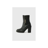 MOSCHINO love moschino leather boots. They have thick skirts, round noses, rubber on the sides, and a leather sticker on the side with the golden logo LOVE MOSCHINO.