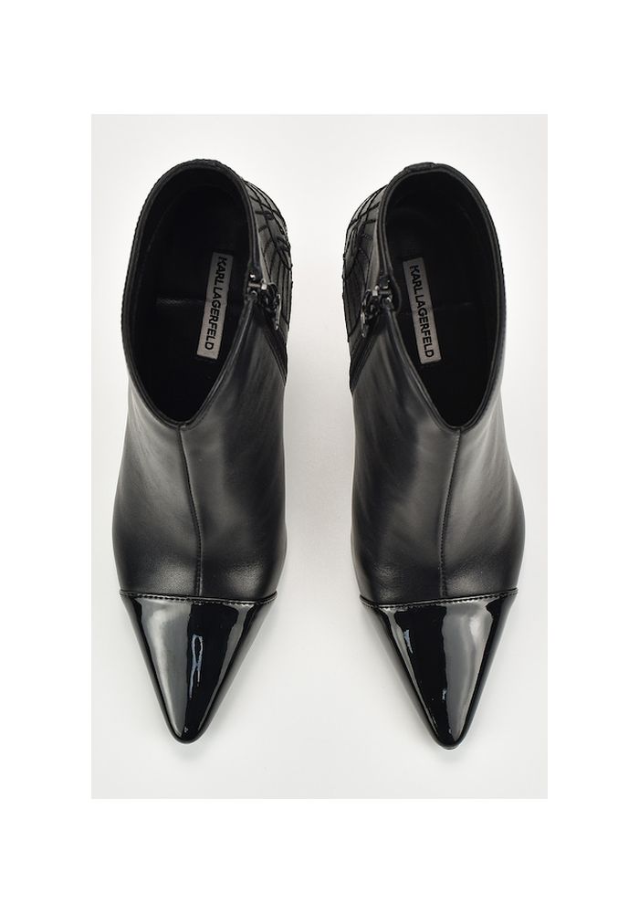 Τα μποτάκια της KARL LAGERFELD διαθέτουν κομψή μυτερή μύτη και εντυπωσιακό τακούνι κλεψύδρας με φινίρισμα υψηλής λάμψης. Η κεντημένη λεπτομέρεια KARL Signature προσθέτει μια πινελιά πολυτέλειας, ιδανική για να αναδείξει κάθε ντύσιμο. Σχεδίαση με ολίσθηση Μυτερό Τακούνι κλεψύδρας 9cm με φινίρισμα υψηλής λάμψης Λεπτομέρειες με κεντημένη υπογραφή KARL Σύνθεση: 100% Δέρμα