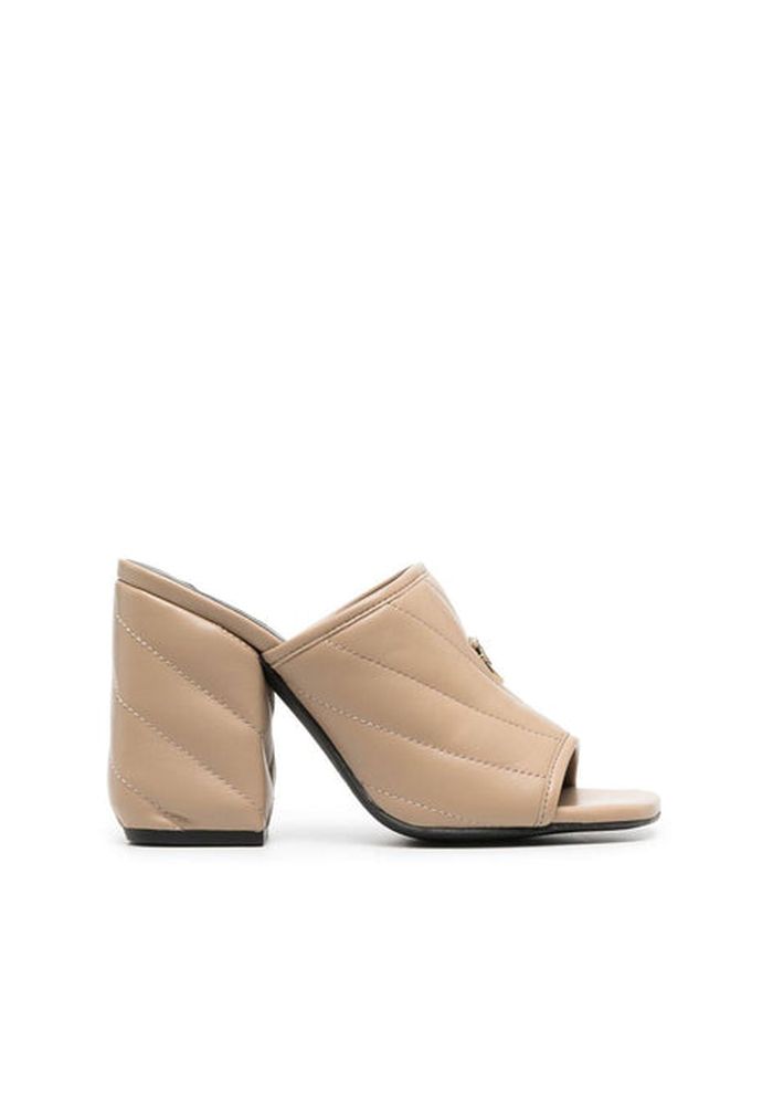 Capitone mules with the 110 mm logo from PINKO with μbez, calf skin, clawed Love Birds, open nose, square nose, capitone, eponymous solo and high heel.And SizeFit: TAKOYNNI: 11.0 cm Color: μbez 100% calf