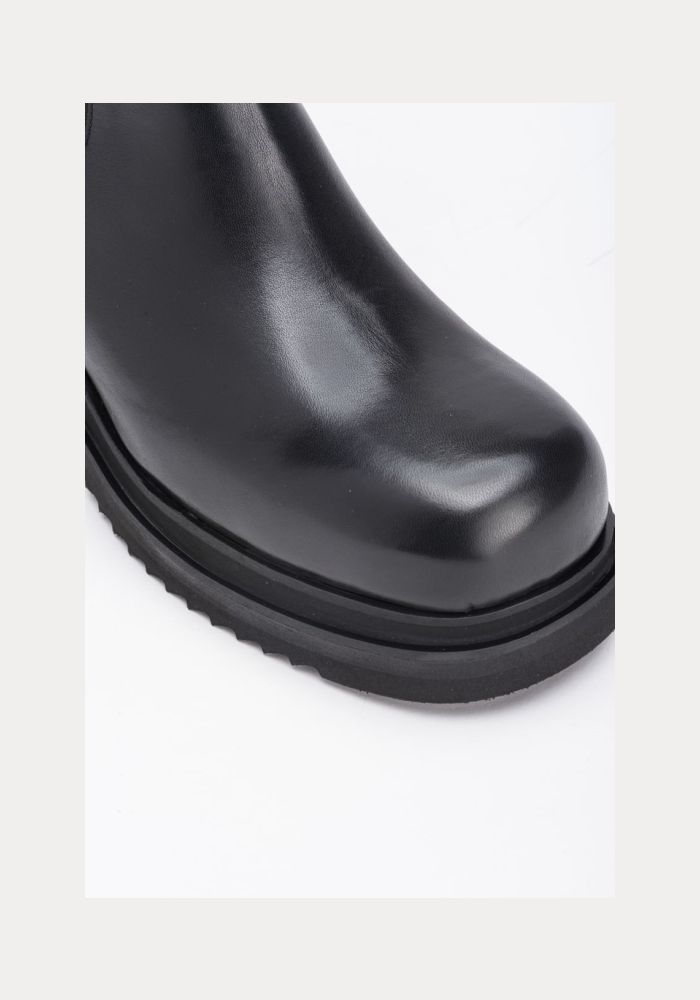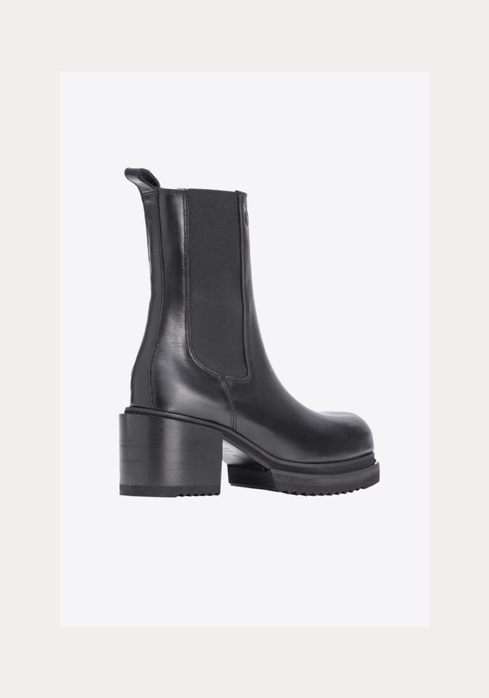 Δερμάτινα μποτάκια μέχρι τον αστράγαλο σε στυλ Chelsea boot με μεταλλιζέ όψη, με στρογγυλεμένη μύτη και λάστιχο στην εσωτερική πλευρά του λαιμού που έχει ύψος 20 cm. Δερμάτινη φόδρα, λαστιχένια τρακτερωτή σόλα και chunky τακούνι 7 cm, διακοσμημένο με μεταλλικό λογότυπο Love Birds πλευρικά. ΔΕΡΜΑ ΠΡΟΒΑΤΟΥ 100% - Σόλα: ΛΑΣΤΙΧΟ 100% - Φόδρα: ΔΕΡΜΑ ΠΡΟΒΑΤΟΥ 100% Ύψος τακουνιού: 7 cm