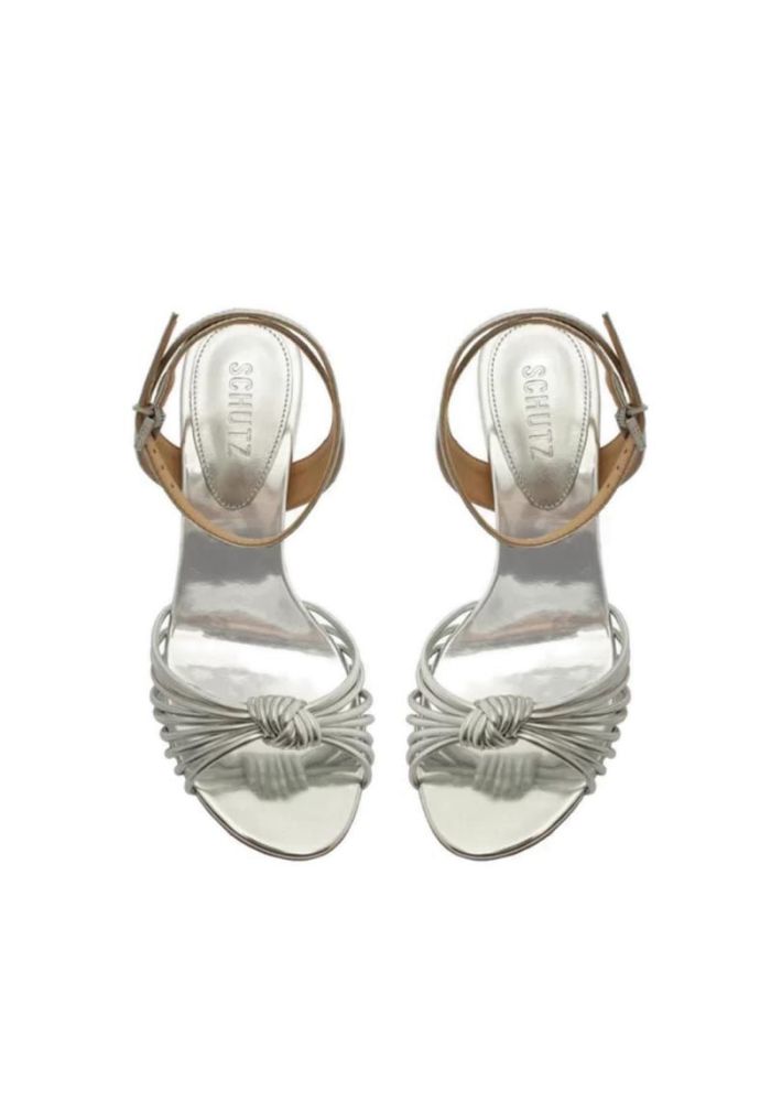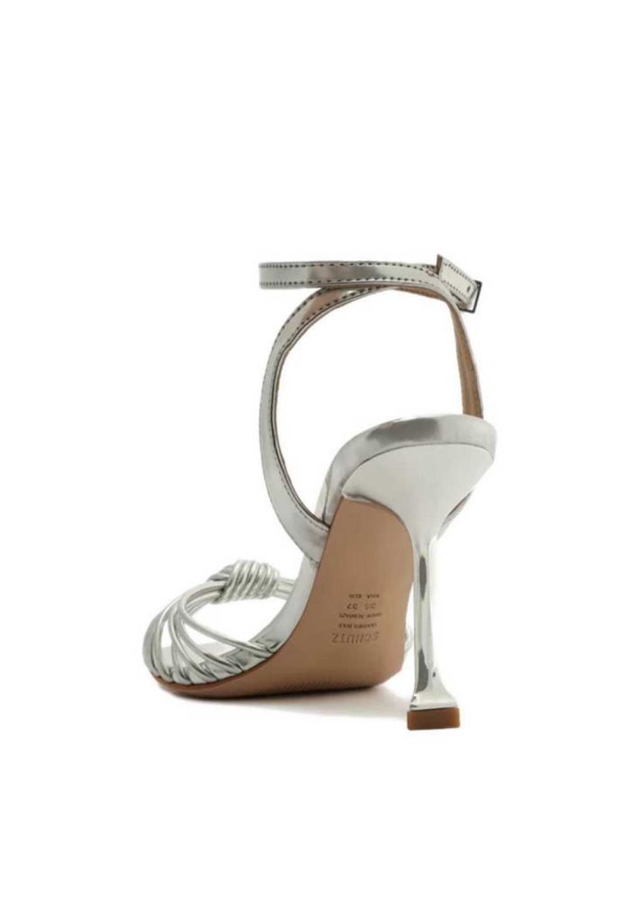 This luxurious, silver pearl has a transparent groove at the top and closure at the ankle, details that add femininity and elegance to the design.The low-backed cartridge is modern and comfortable.