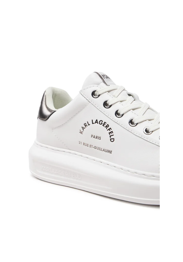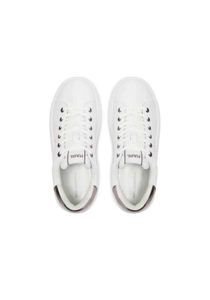 Η μεταλλική γυαλάδα στο εμβληματικό λογότυπο Maison KARL αντανακλάται στη φτέρνα, πλαισιώνοντας ένα μινιμαλιστικό δερμάτινο sneaker Nappa. Σχέδιο με κορδόνια με κερωμένα κορδόνια Εξωτερική σόλα πλατφόρμας EVA. Λογότυπο KARL στο πλάι και τη φτέρνα Σύνθεση:100% Δέρμα