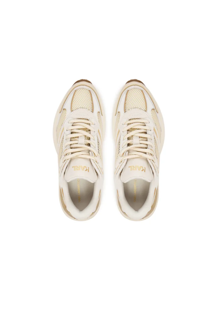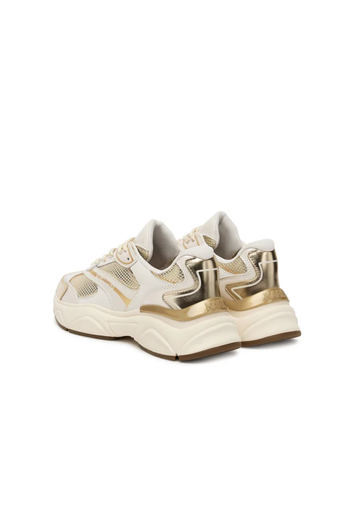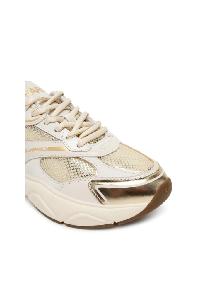 KARL LAGERFELD Sneakers Komet Lace Metal. Διαθέτει στρογγυλή χρυσή μύτη, δέσιμο με κορδόνια διακοσμημένα με χρυσή λεπτομέρεια, χρυσές λεπτομέρειες δίχτυ και λογότυπο στο πλάι. Σύνθεση: 100% Δέρμα