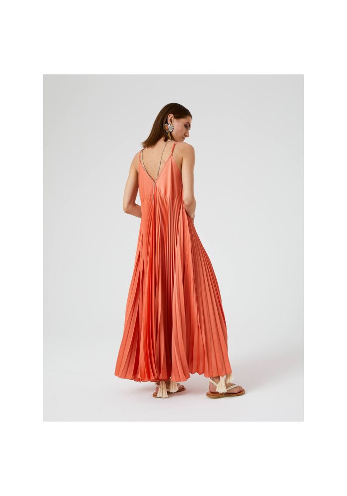 Sfizio Φόρεμα Pleated long dress with beaded detail 21FE6478SATIN-370 Peach