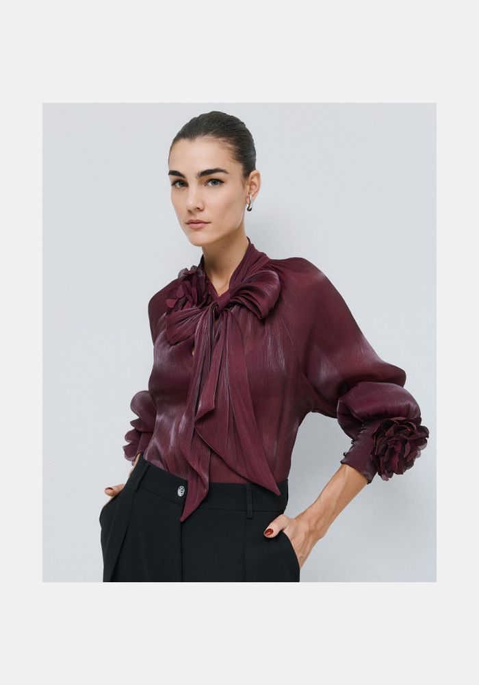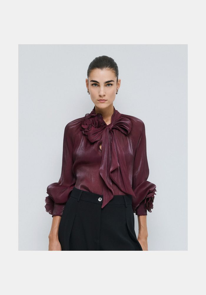 Access Fashion Μπλούζα γυαλιστερή με καρφίτσες λουλούδια Bordo 54-2014-149